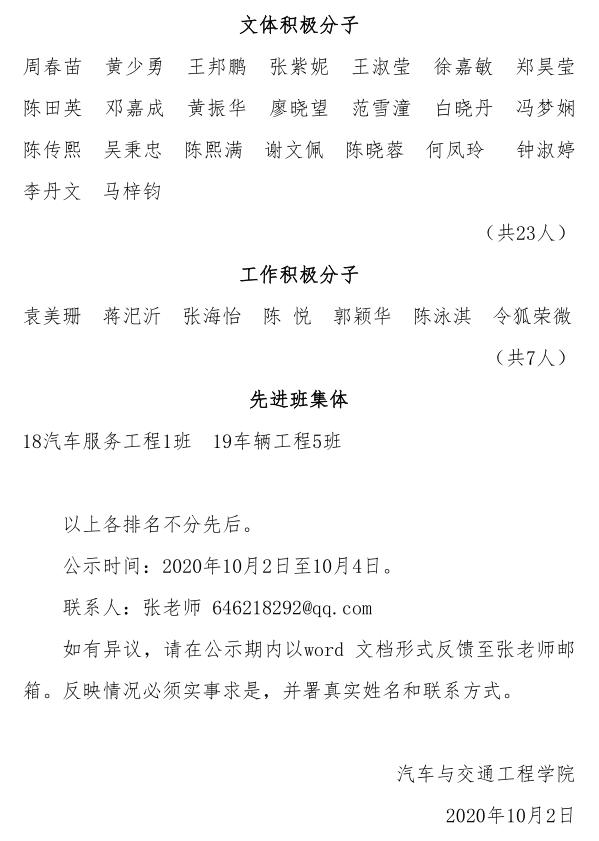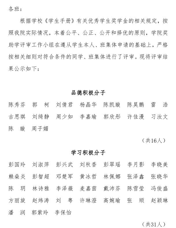 2019-2020 学年度云顶国际非毕业班单项积极分子、先进班集体评审结果公示