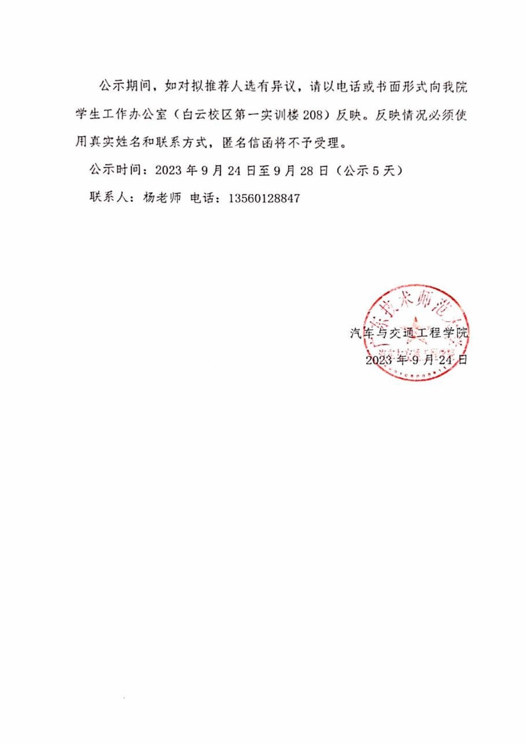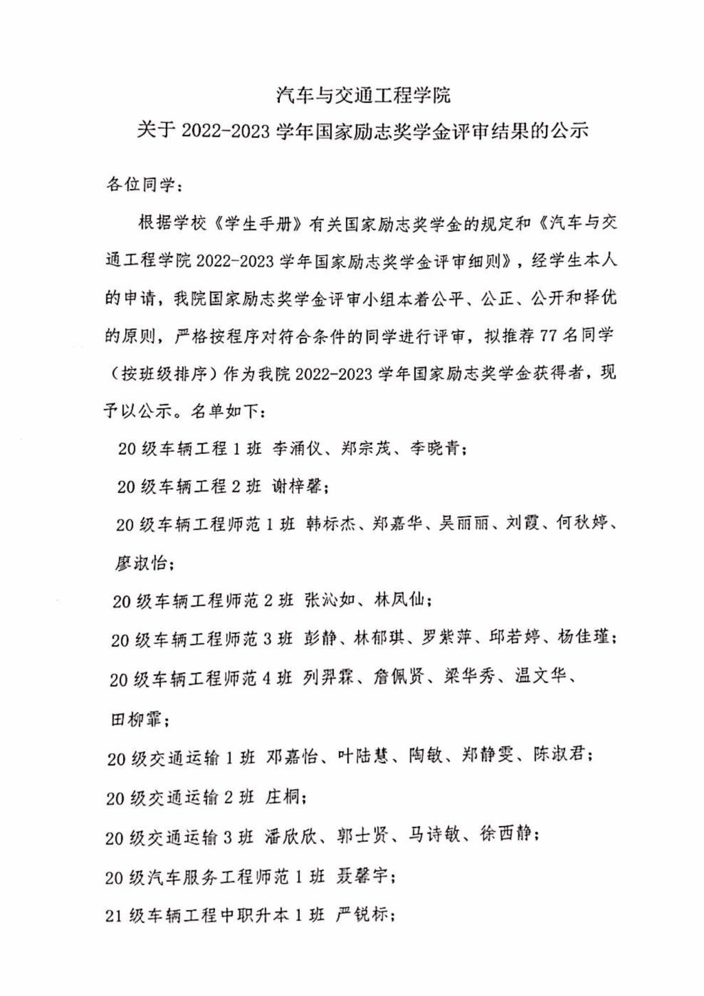 关于2022-2023学年国家励志奖学金评审结果的公示