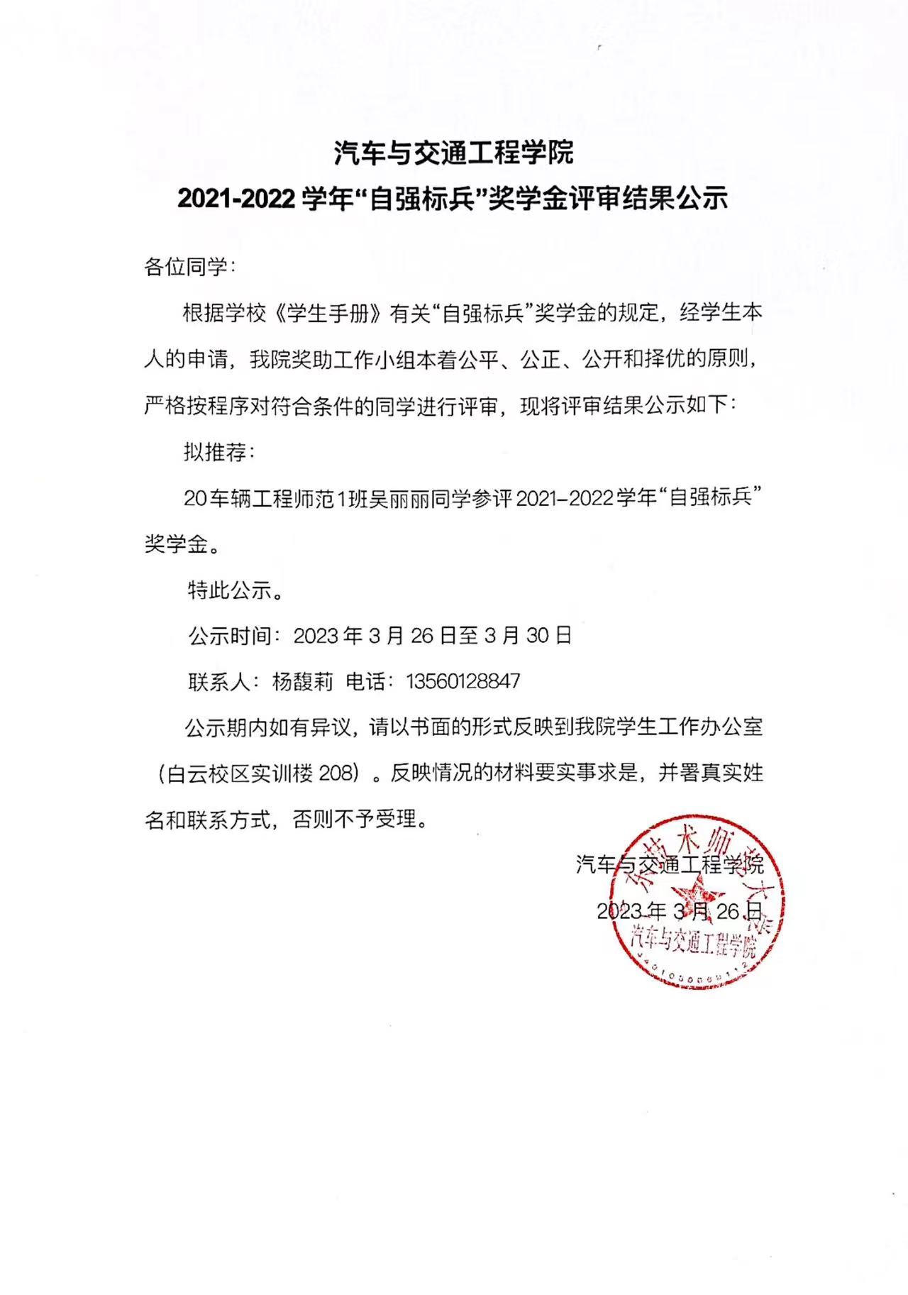 云顶国际2021-2022学年“自强标兵”奖学金评审结果公示