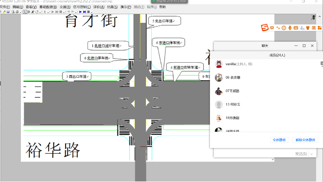 课程直播:在正式上课之前通过试播和比选,最后选择“腾讯会议”作为直播平台,员工普遍反映直播清晰流畅,卡顿少。直播授课主要讲解上次作业中的易错点、本次课的重点及相应的VISSIM软件的操作演示,并要求员工同步练习,实时解答员工的提问;
