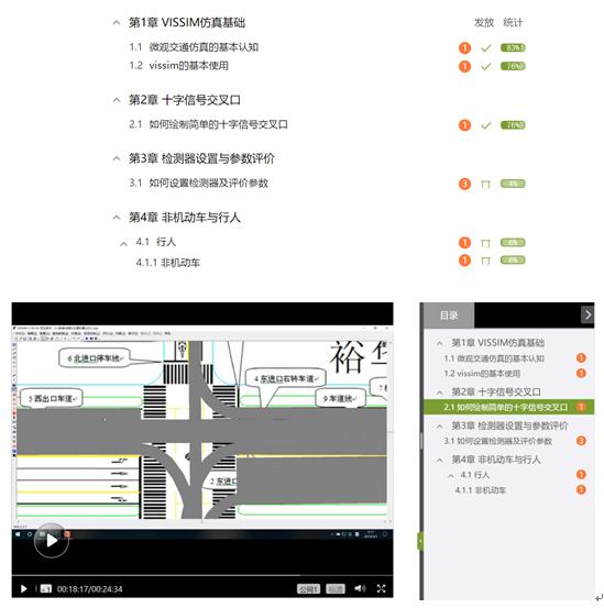 课程录播:由于软件操作步骤较为繁复,涉及到一些较细微的操作,为了员工能够更好地自主学习,授课老师提前准备了相应的VISSIM操作录播课。员工可以在直播过后,自行观看录播视频,并同步练习。录播的优点就在于员工在直播可能没看清的操作,在录播视频里可以反复观看,对于不懂的操作可以停下来研究,还可以和同学、老师讨论,便于员工学习和巩固。录播视频上传到超星平台的“章节”中并设置了闯关模式,要求员工一定要在学完上一章节的内容后才可以继续本次课程内容的学习。