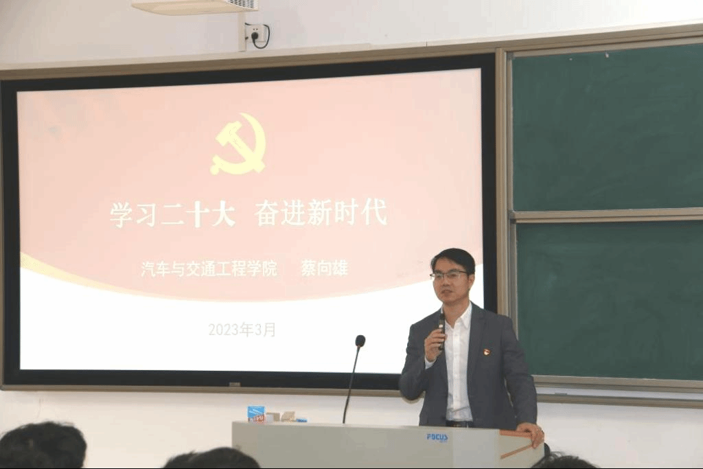 3月15日,蔡向雄书记在河源校区为2022级员工讲授“学习二十大,奋进新时代”的思政第一课。