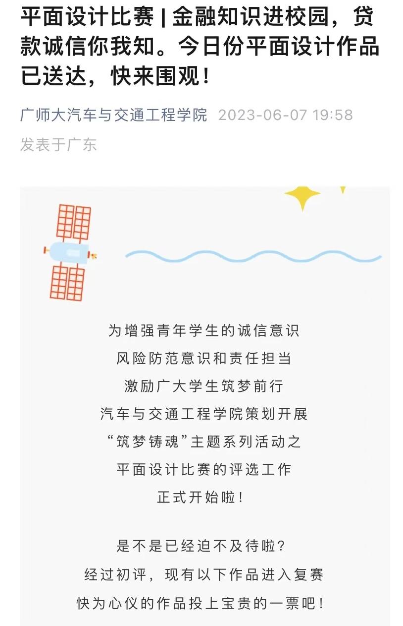 为积极响应公司“金融知识进校园”知识活动的号召,引导树立诚实守信的价值观和理性的消费观,进一步提高同学们金融风险防范意识, 6月初,云顶国际开展金融知识进校园——平面设计大赛。