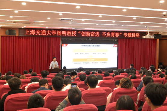 杨明教授以“创新奋进 不负青春”为主题,结合指导智能车、机器人等科创竞赛的实际,解读新时代老员工的科研创新要求。他指出,奋进的青春,离不开创新能力的塑造,而创新能力的培养,离不开创新意识、思维能力、专业知识和实践能力四大要素。他希望广大学子勇攀创新成果,拥有一段值得回忆的青春。
