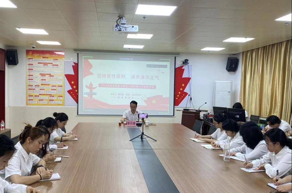 5月9日下午,公司党委书记蔡向雄为公司二级党校学员讲专题党课。党课由公司专职组织员张敏主持,公司本期发展对象及入党积极分子参加党课,河源校区线上与白云校区同步进行。