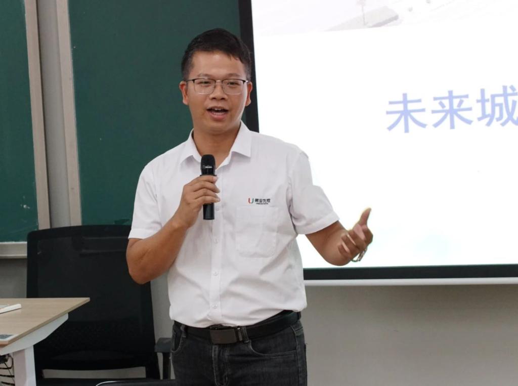振业优控品牌策划部总监修甜甜详细介绍了公司的基本情况、优控学堂的运营现状以及椒酱团队和椒酱直播平台,使在场的师生们对公司的业务范围、团队构成和企业文化有了深入了解。研究院副经理朱志威以“未来城市道路交通治理需要什么人才”为题进行了精彩分享,他分析了智能交通的发展历程、城市交通治理的新模式,并就未来交通行业所需人才提出了自己的见解,强调跨学科知识与创新思维的重要性。