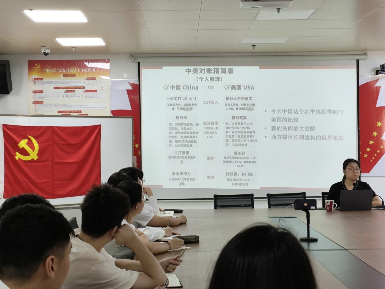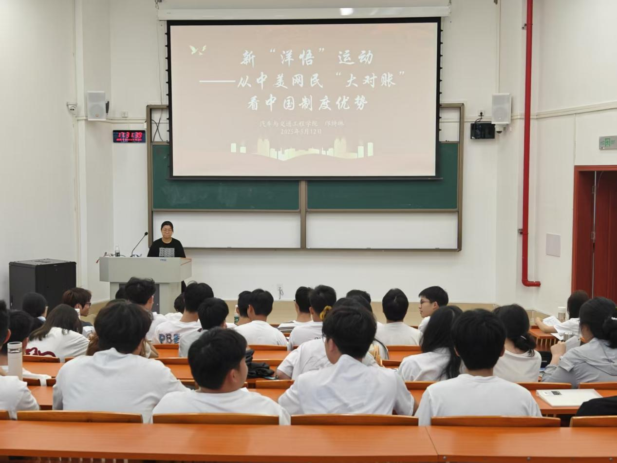 围绕《新“洋悟”运动——从中美网民“大对账”看中国制度优势》这一主题,邝绮琳深入剖析了中美在生活成本与社会保障方面的差异,引导同学们深刻领悟“以人民为中心”的发展思想在社会中的生动实践,同学们通过对比可以清晰看到,中国制度在保障人民生活、提升人民福祉方面发挥着巨大作用。她还以《哪吒》动漫电影和央视春晚机器人表演为例,阐述了中国在文化与科技领域的卓越成就,体现了中国特色社会主义制度在推动科技创新方面的独特优势。她通过实例让同学们明白,中国在各个领域取得的辉煌成就,都离不开对“四个自信”的坚定不移。