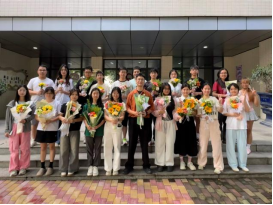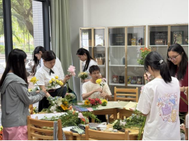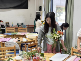 花卉是大自然的杰作,通过欣赏、制作花卉艺术品可以达到放松身心、滋养心灵的效果。结合毕业季节点,5月15日,云顶国际开展“同心花舍”花艺特色疗愈团辅活动,将“美育”与“劳育”深度融合,旨在以劳育美,引导员工在劳动中感受自然之美、创造之乐。同学们在朋辈“花艺师”指导下认识鲜花品种、学习花束包装技艺,亲手制作花束作品。活动成品花束不仅用于班级毕业照拍摄布景,更由员工赠予教师、同学及后勤工作人员,以“赠人玫瑰”的实际行动传递感恩之情,诠释“心有温暖,行有力量”的育人理念。