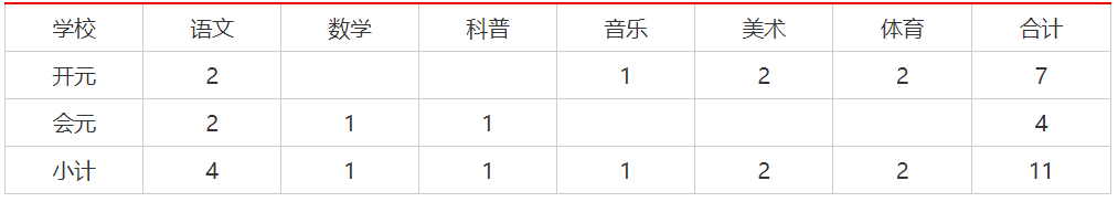 两校共招聘教师20名,其中会元公司4名,开元公司16名,获聘人员均为事业单位事业编制人员。具体岗位,如下表: