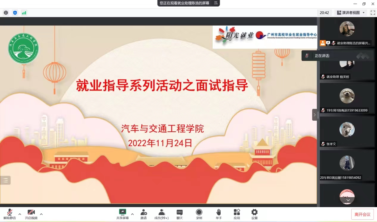为提高公司毕业生就业竞争力,提升求职面试技巧,11月24日,公司举办“阳光就业,事业扬帆”进校园活动。本次邀请公司就业办黄曼琳老师通过腾讯会议为员工带来就业指导之面试指导主题讲座。23届毕业生及其他年级同学近300人参加本次讲座。