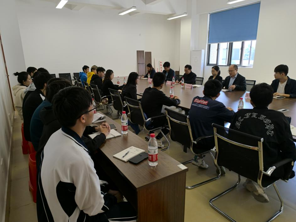 副经理曾祥坤认真听取并细心解答了专业培养、大学学习方法等大家普遍关心的问题,再以班委沟通的重点展开,在专业概论、机械制图等专业知识方面提出相关意见以及做法,提醒同学们转变学习思维,明确学习任务并表达了对同学们的殷切期望。