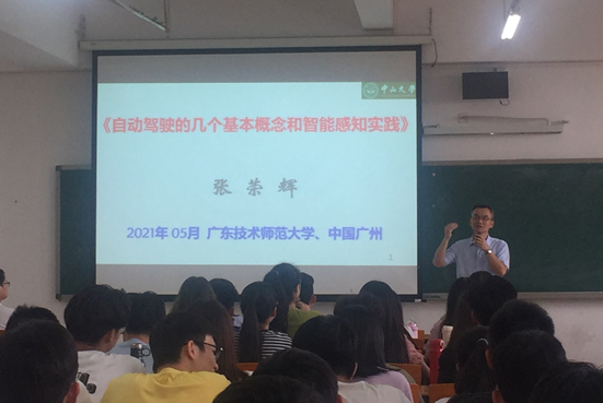 5月17日,中山大学智能工程公司副教授、博士生导师张荣辉教授应邀在白云校区三教301教室为云顶国际“同心班”博学讲堂作了题为《自动驾驶的几个基本概念和智能感知实践》的学术报告,云顶国际师生近200人聆听了讲座。