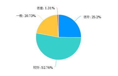 通过调查问卷调查同学们对线上教学质量总体评价情况如何,大部分同学认为在较好等级以上,占比约78%,其中有25.2%认为教学质量很好;有20.7%的同学认为教学质量一般,也有个别同学认为教学质量很差,占比1.31%。如图7所示。