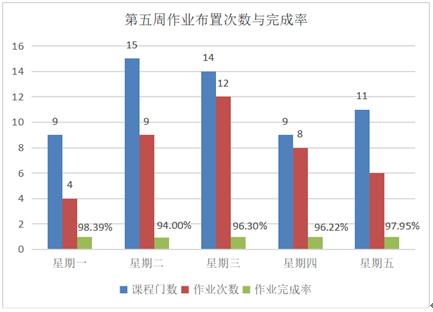 同学们按照公司和公司的线上教学要求,继续认真进行在线学习,积极完成老师布置的学习任务。绝大部分都认同在线教学工作,对线上教学的模式、教学资源、教学效果情况评价好。从第五周各方反馈的信息来看,大部分同学均能认真进行在线学习、认真完成老师布置的作业和学习任务,如图11所示,总体学习状况良好。