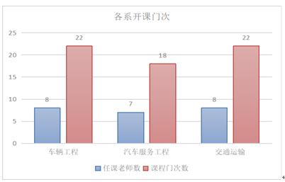 第四周,云顶国际应开专业理论课程开课62节次,开课率100%,上课班级数28个,任课教师为23人,参与线上学习的员工数864人。各系部任课老师人数和开课节次数如图1所示,各课程线上教学开展顺利,教学运行状态良好。