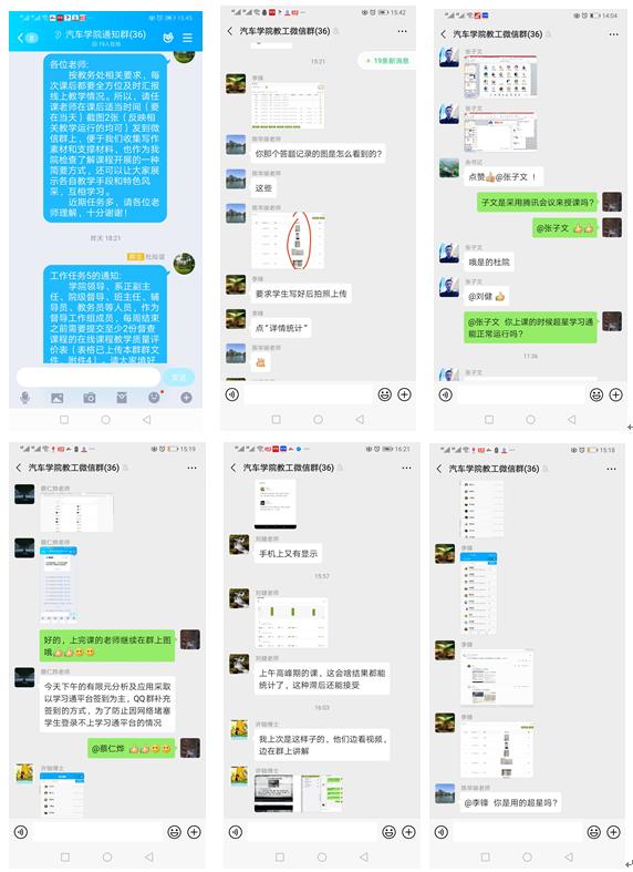 为方便全院教师了解各门课程每次线上教学的基本情况,要求任课老师在课后适当时间(要在当天)截图2-3张(反映在线教学运行的相关图片)发到微信群上,让大家及时反馈意见、积极讨论,不但方便于展示各自教学手段和特色风采、激发互相学习提高的热情,还有利于公司多角度对课程线上教学进行监督和了解,确保所有在线课程的高效运行。